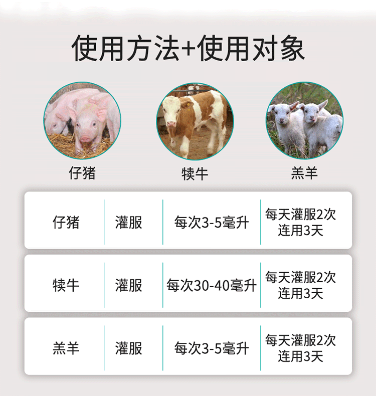 仔豬,1天2次 1次5ml 連用三天;