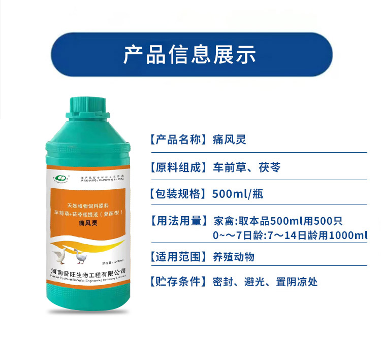 產(chǎn)品簡介:保肝護(hù)腎通腎、排毒利尿、增強(qiáng)肝臟解毒能力 混合型飼料添加劑適用對象-雞鴨鵝豬牛羊等畜禽通用。 500ml/瓶 取本品一瓶用500只0-7日齡,7-14日齡用2瓶。