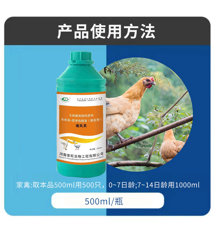 混合型飼料添加劑適用對象-雞鴨鵝豬牛羊等畜禽通用。 500ml/瓶 取本品一瓶用500只0-7日齡,7-14日齡用2瓶。 " />